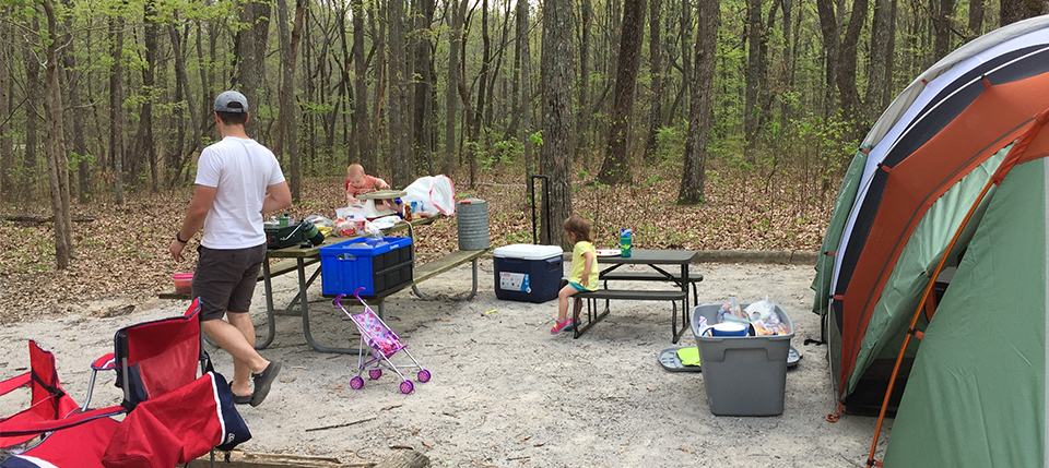 We finally were ready to try another camping trip with our kids. We had tried to go camping with Reese when she was younger,but the colder weather and her not being able to move in her sleep properly made the trip a failure. Read more about it HERE. We were then invited to go with friends who have kids as well as 2 other couples with kids to Joe Wheeler State Park which looks really nice. However, Sebastian had a fever the night before, and we found out the temperature was supposed to plummet again. So, we had to cancel going that weekend. The weekend after that, the weather was supposed to be a lot nicer so we decided to try the same camp grounds we had tried with Reese at Monte Sano State Park. They are very close to home, so if we did have to go home for some reason we could have without too much trouble. Grant was able to take Friday off, and we were allowed to check into our campsite around 11am. At noon is when we ended up leaving the house,but we had a pit stop to make at Walmart before hand.