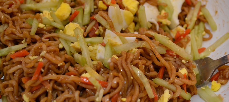 One of the recipes that my sister Tanya showed me, and we make on a regular basis is Asian Ramen. I think it tastes really good, and is a quick meal to make when in a hurry for dinner. You can pretty much add whatever you want,but here is a sample of what our typical additions are.